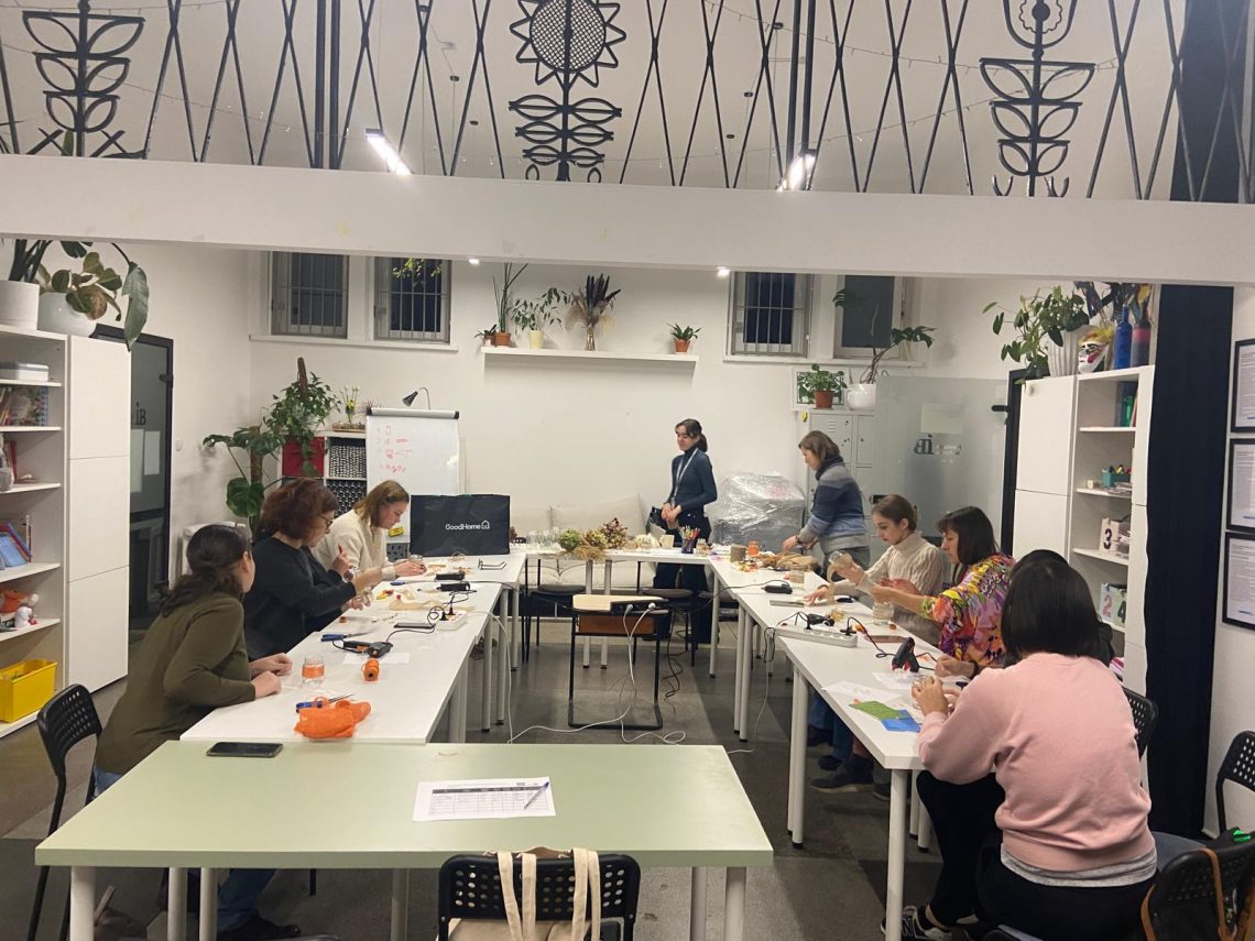 The workshop was led by Aneta, with the support of Paula and Maria, volunteers from the European Solidarity Corps. Together, we guided the participants step by step through the process, helping them design and personalize their own candle holders.