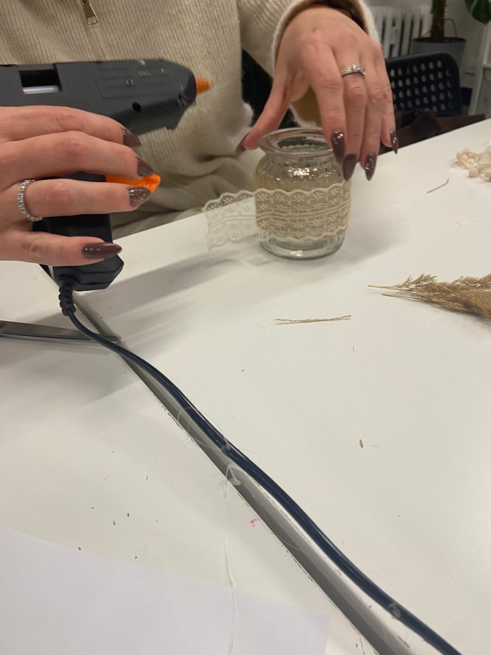 As every two weeks, the craft workshops at IB Polska turned Wednesday afternoon into a joyful space for creativity and connection. This autumn session was dedicated to crafting decorative candle holders, inspired by the warm and cozy spirit of the season. Using simple materials such as glass jars, dried flowers, burlap fabric, ribbons, and even real autumn leaves, participants transformed everyday household jars into beautiful handmade decorations ,perfect for this time of year.