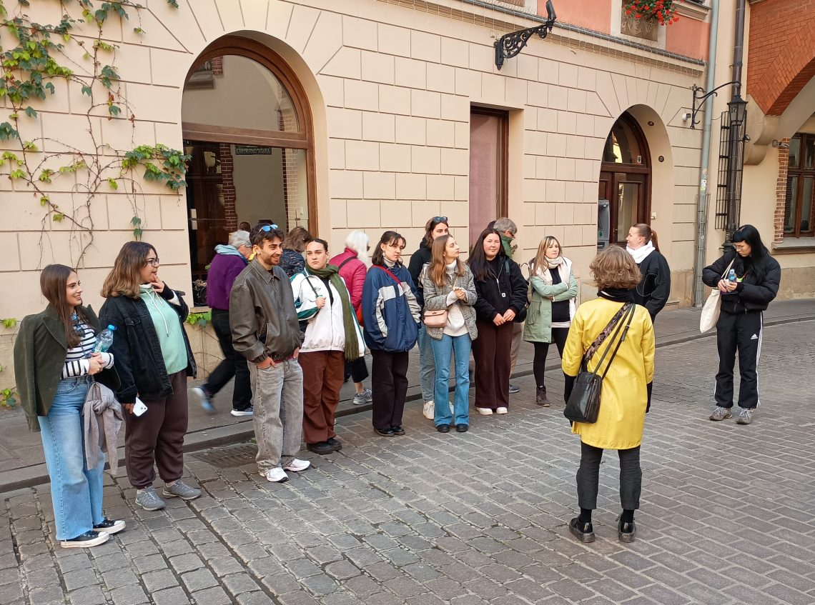 Then we visited a few university buildings, where we even had the chance to go into a backyard with a wall decorated with signatures from famous Polish authors. This especially showed us the many sides of Polish culture.