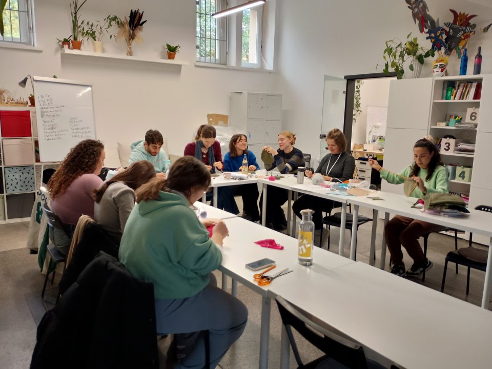 As a contrast to this depressing but also important and interesting topic, we took a short walk through the park near the lake. Then we took the tram to Wanda Hill. Afterwards, we walked through Nowa Huta back to our office. We ended our shared day by crafting pumpkins and talking about general rules of our volunteering regarding the days off.