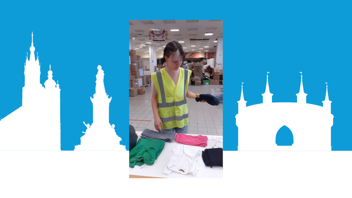 Today, together with the other European Solidarity Corps volunteers at IB Polska, I help once a a week in a free shop for Ukrainians. Szafa Dobra, as it is named, was set in a former shop mall and allows refugees to take for free as many second hand clothes as they need. I like it because people don’t have to look into piles of items, but they can choose clothes from hangers and check if they fit. The whole situation is really sad and worrying. I am grateful to be able to help a little.