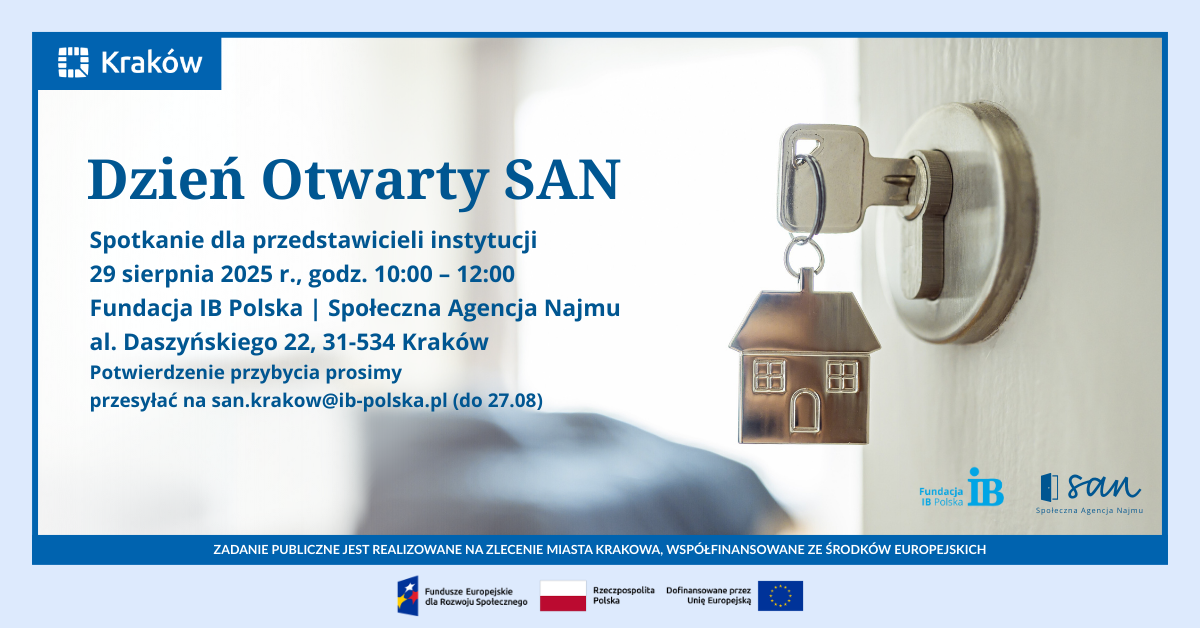 Informujemy, że realizacja Społecznej Agencji Najmu w Krakowie jest zadaniem powierzonym Fundacji IB Polska przez Gminę Miejską Kraków.