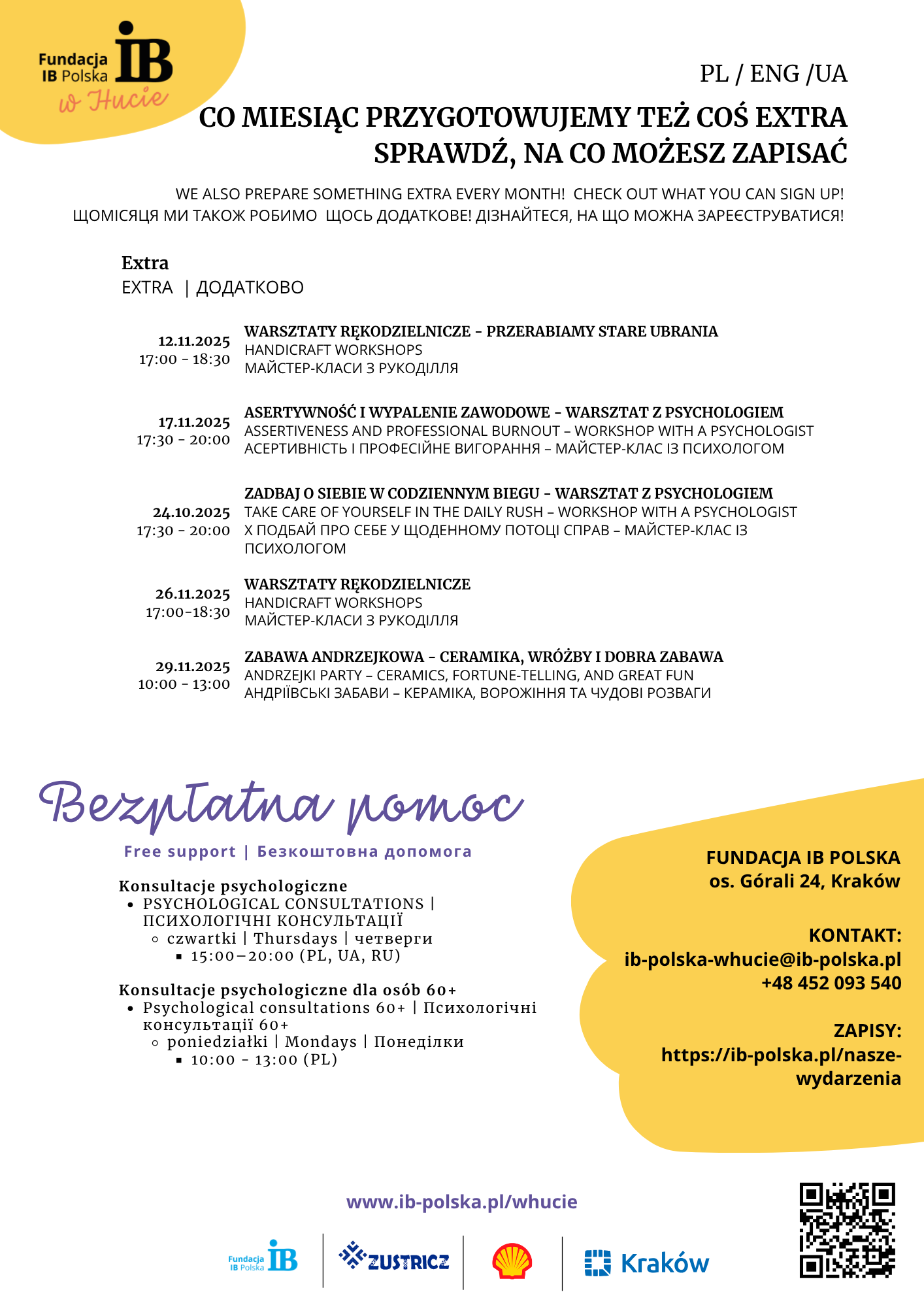 Listopad w IB Polska w Hucie – zapraszamy na zajęcia i warsztaty!