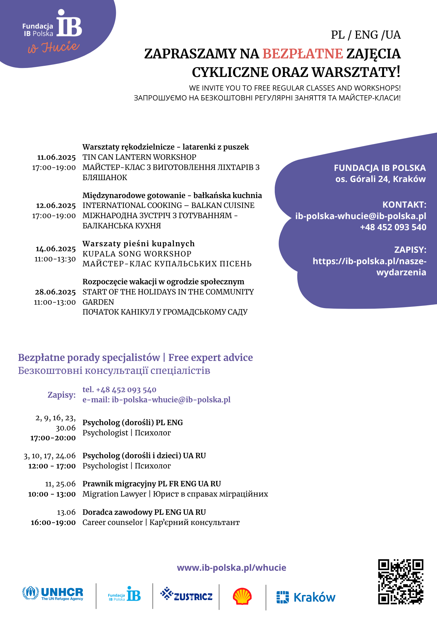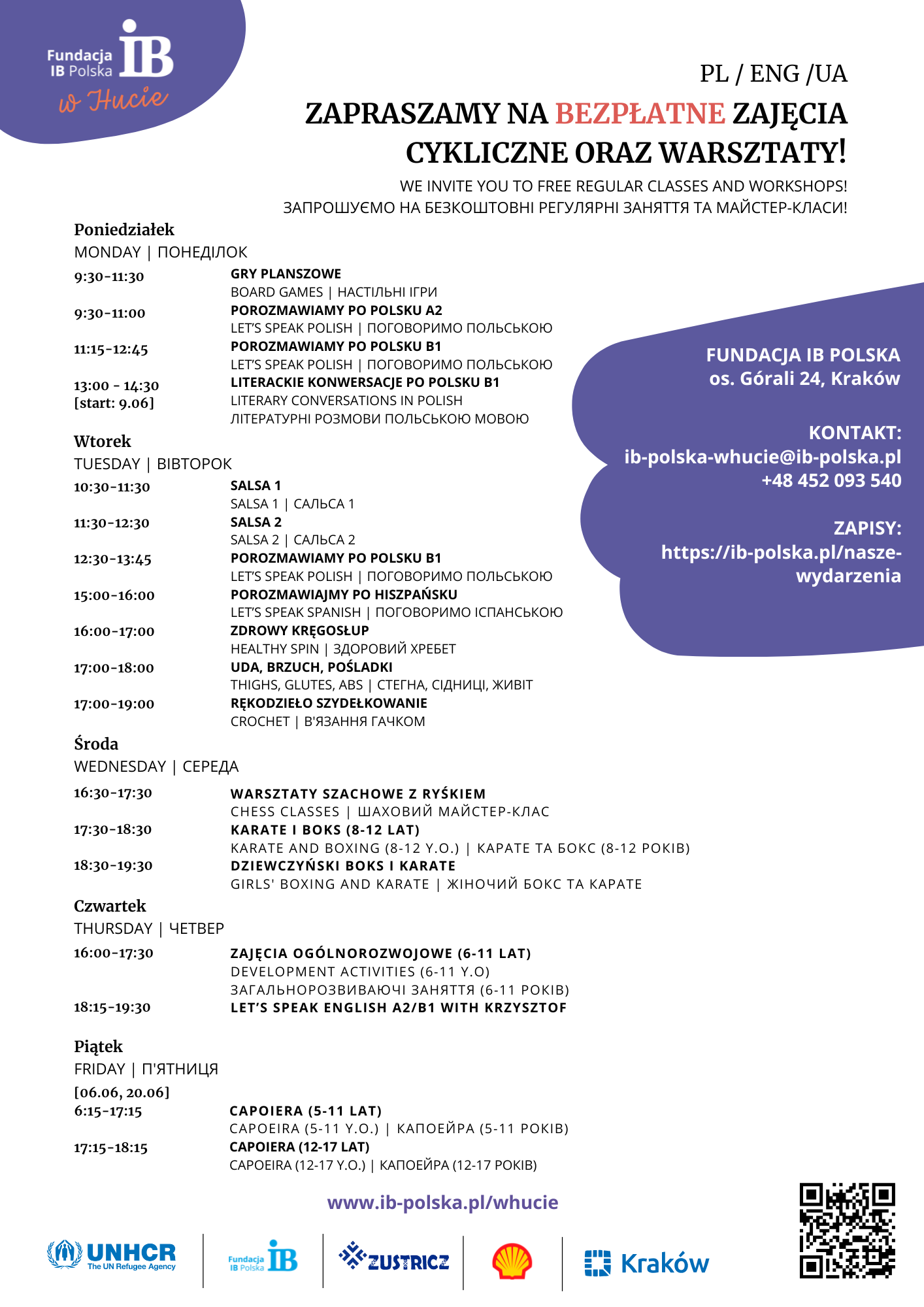 Harmonogram zajęć dodatkowych w IB Polska w Hucie w czerwcu 2025!