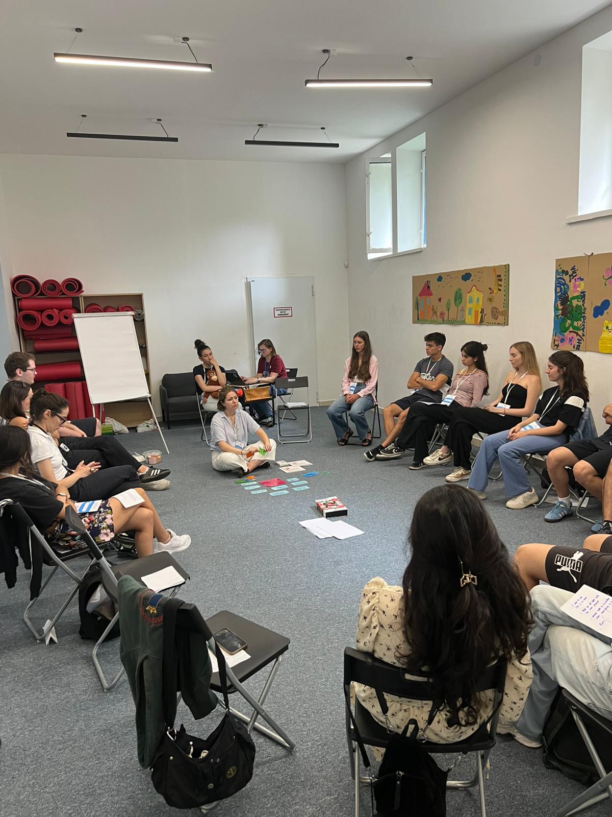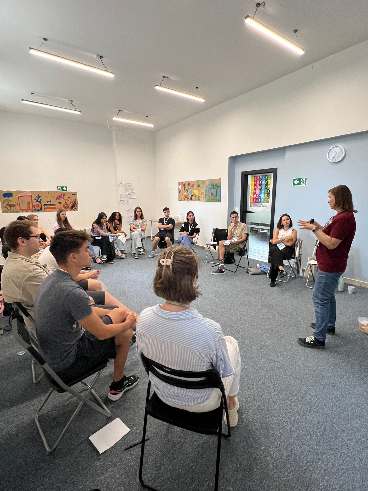 Wolontariusze mieli czas, aby dobrze się poznać i zintegrować w pierwszych dniach spotkania, zrobić burzę mózgów i zadecydować, jakie zajęcia chcą przygotować dla dzieci (7-10 lat) i nastolatków (11-15 lat). Było dużo ruchu, nauki tradycyjnych tańców greckich, hiszpańskich i włoskich, kreatywnego malowania i lepienia z gliny, uczenia się niełatwych słówek po hiszpańsku, grecku, portugalsku czy włosku. A w czwartki zapraszaliśmy starszych uczestników (18+) na wspólne gotowanie hiszpańskich i włoskich przystawek. Wolontariusze chętnie sięgali do zabaw z własnego dzieciństwa (różne rodzaje ciuciubabki, klasy, labirynty, tory przeszkód), które podobały się uczestnikom (a na narysowanych na chodniku klasach bawiły się przechodzące obok siedziby IB Polska w Hucie dzieci). Był też dzień poszukiwania pirackiego skarbu (dla młodszych) i rozwiązywania logicznych zadań, dających kolejne wskazówki (dla nieco starszych). A to wszystko po angielsku!