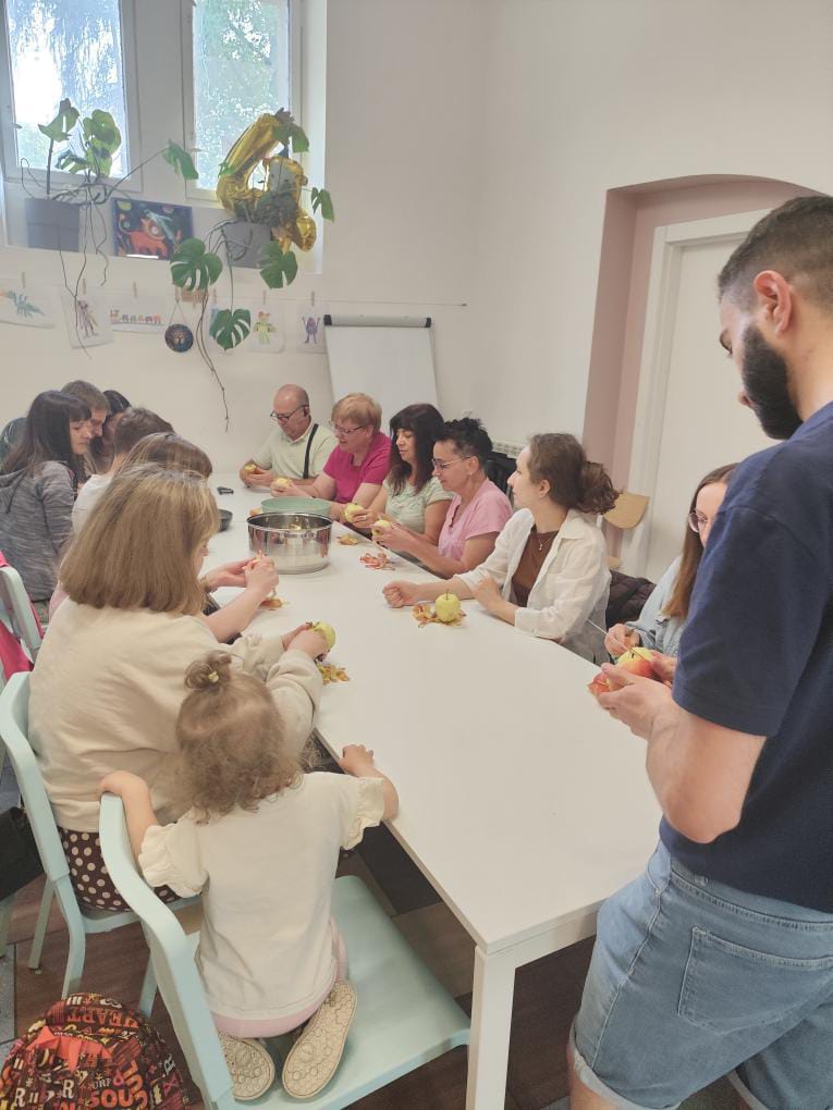 Następnie wszyscy przenieśli się do kuchni, gdzie wspólnymi siłami obierali jabłka i zgniatli orzechy włoskie, przygotowując tradycyjny bośniacki deser – Tufahija.