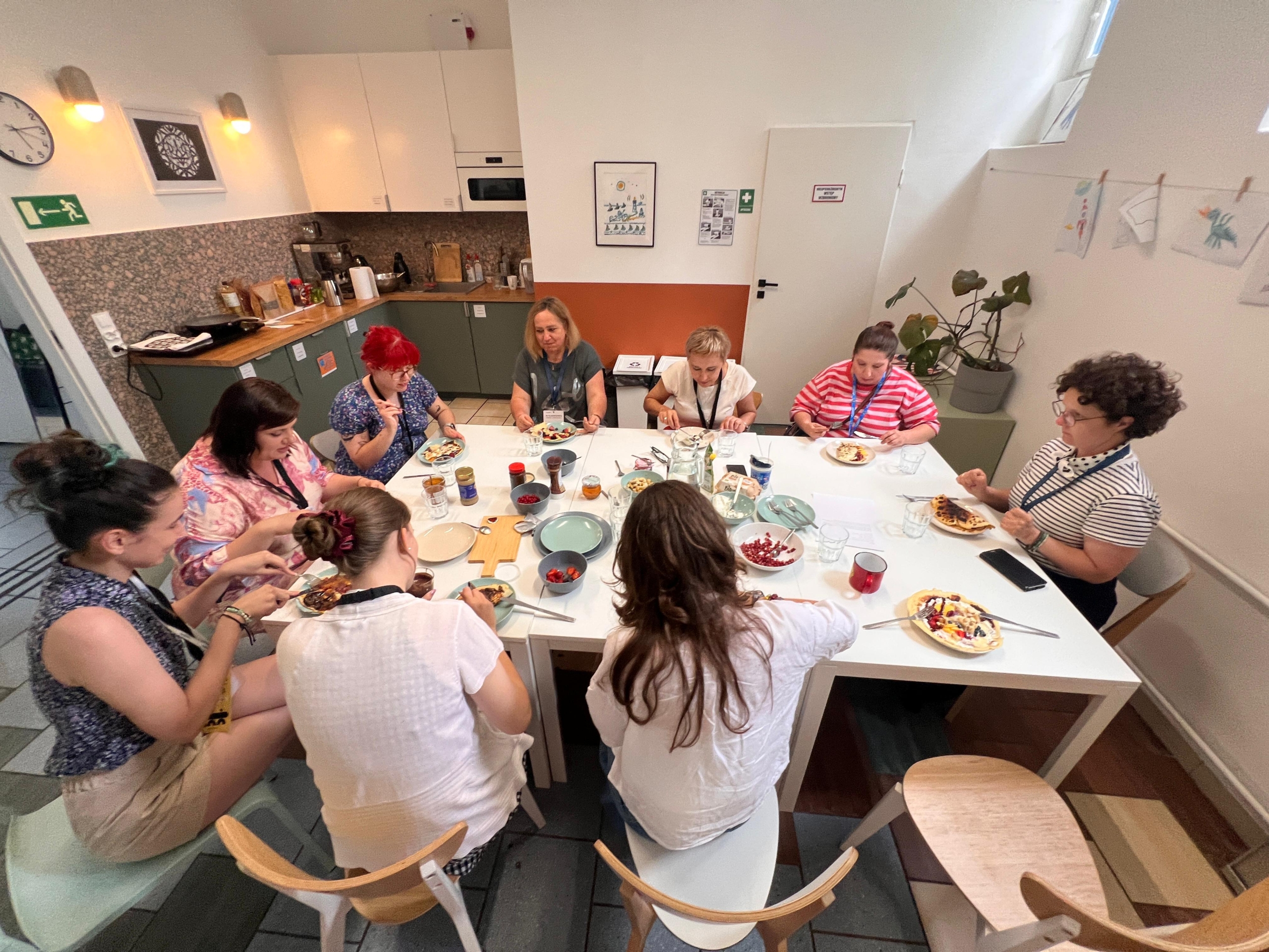My w ramach NIEKONGRESU byliśmy gospodarzami stolika z wartościami, w których poruszyliśmy temat sąsiedztwa. Mówiliśmy o budowaniu wspólnoty, otwartości, wzajemnej pomocy, w której nikt nie czuje się samotny. Następnego dnia natomiast w naszej siedzibie na os. Górali 24 poprowadziliśmy warsztaty międzykulturowe „Przy wspólnym stole”, gdzie opowiadaliśmy o tym jak łączyć różne doświadczenia i osoby. W sumie nie tylko opowiadaliśmy, ale też łączyliśmy podczas wspólnego przygotowywania naleśników!