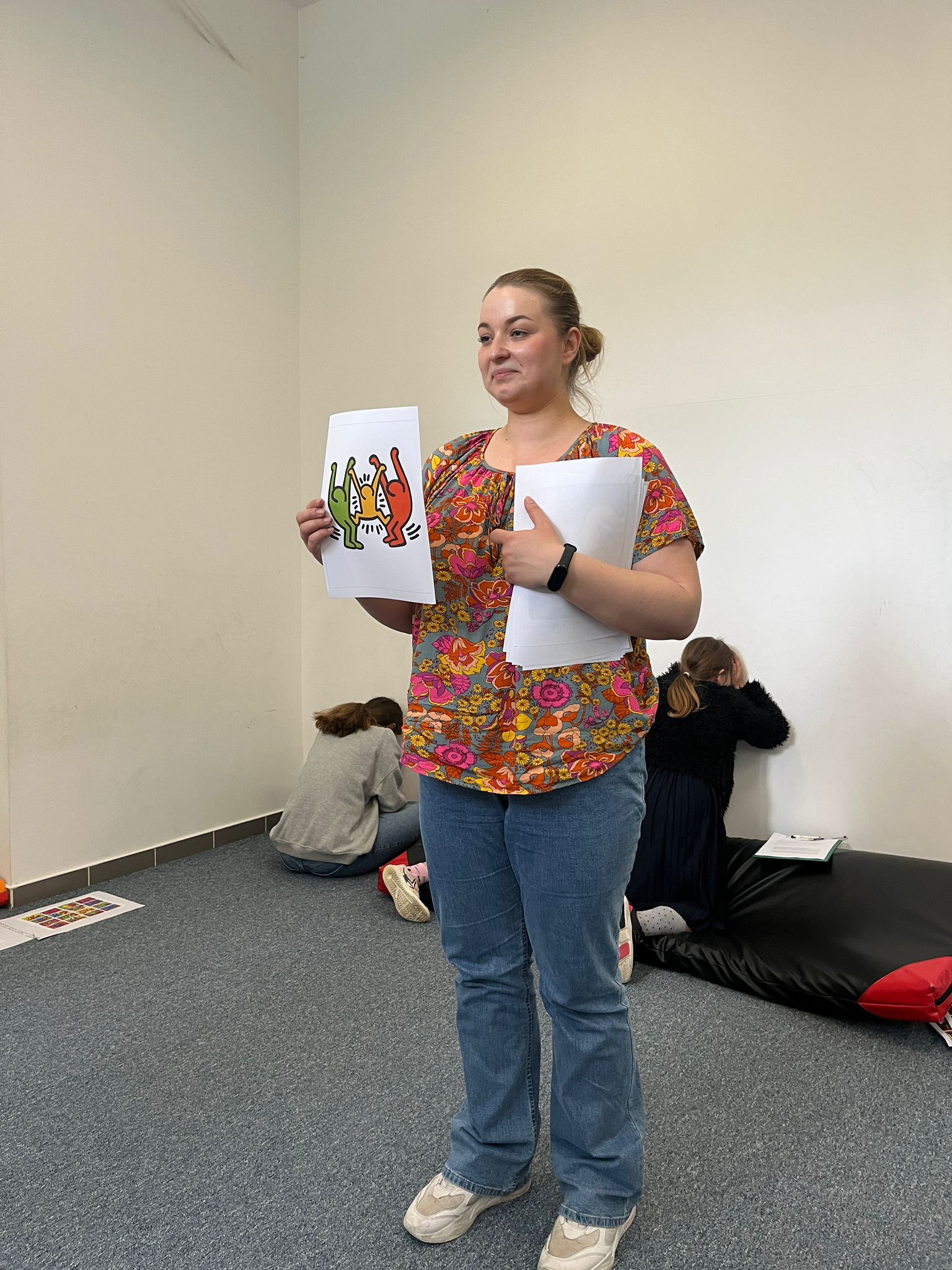 Dla najmłodszych zorganizowaliśmy warsztat arteterapeutyczny, podczas którego dzieci miały okazję wyrazić siebie poprzez sztukę, ruch i twórcze działania. Rysowanie, taniec i samodzielne tworzenie kolorowych rzeźb inspirowanych twórczością Keitha Haringa dały okazję na rozwój wyobraźni, rozruszanie ciała i wzmocnienienie swoich artystycznych zdolności. Przede wszystkim jednak była to wspaniała zabawa pod okiem naszej wolontariuszki Katarzyny Janik.