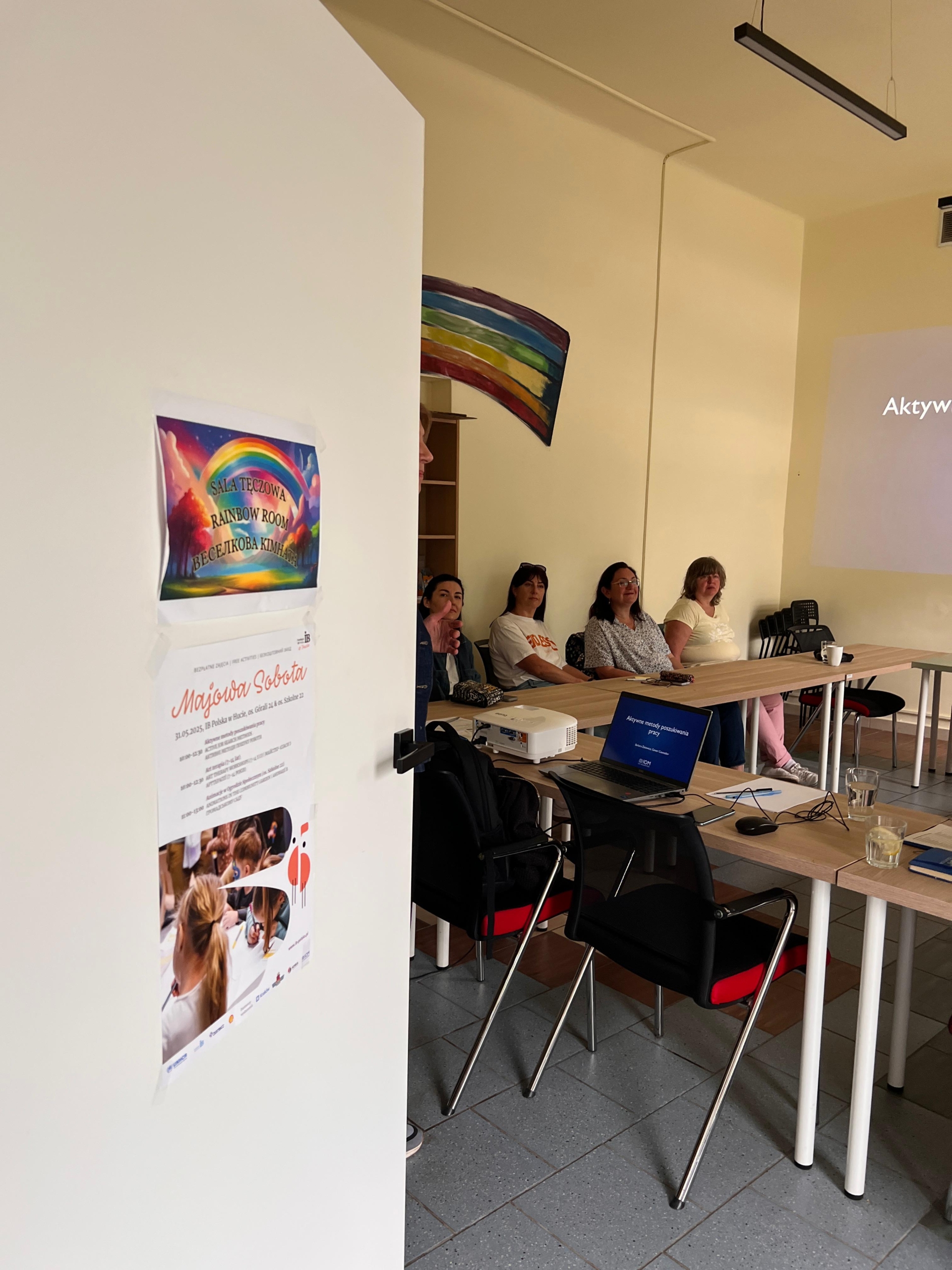 Dla dorosłych przygotowaliśmy również spotkanie z doradcą zawodowym dzięki partnerstwie i współpracy z Międzynarodowa Organizacja ds. Migracji (IOM Poland). Reprezentantki IOM przekazały uczestnikom praktyczne sposoby na skuteczne szukanie pracy. Rozmawialiśmy również o tym, jak unikać typowych błędów rekrutacyjnych, korzystać z networkingu i rozpoznawać wiarygodne oferty. Poruszono także kwestie rodzajów umów oraz dostępnych form wsparcia na rynku pracy.