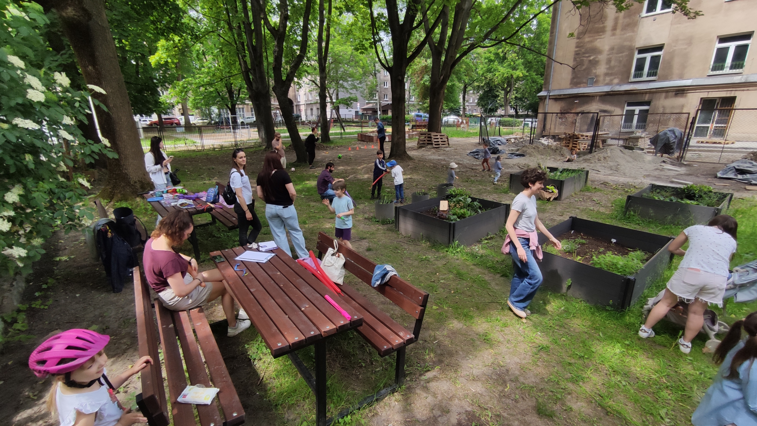Na świeżym powietrzu, w Ogrodzie Społecznym na osiedlu Szkolnym 22, rodziny uczestniczyły w naszych animacjach. Zabawy zespołowe, mini-zawody i gry integracyjne sprawiły, że dzieci mogły wyszaleć się do woli, a rodzice aktywnie włączyli się we wspólną zabawę. Dodatkowo była to również świetna okazja do zadbania o rośliny, które wspólnie zasialiśmy.