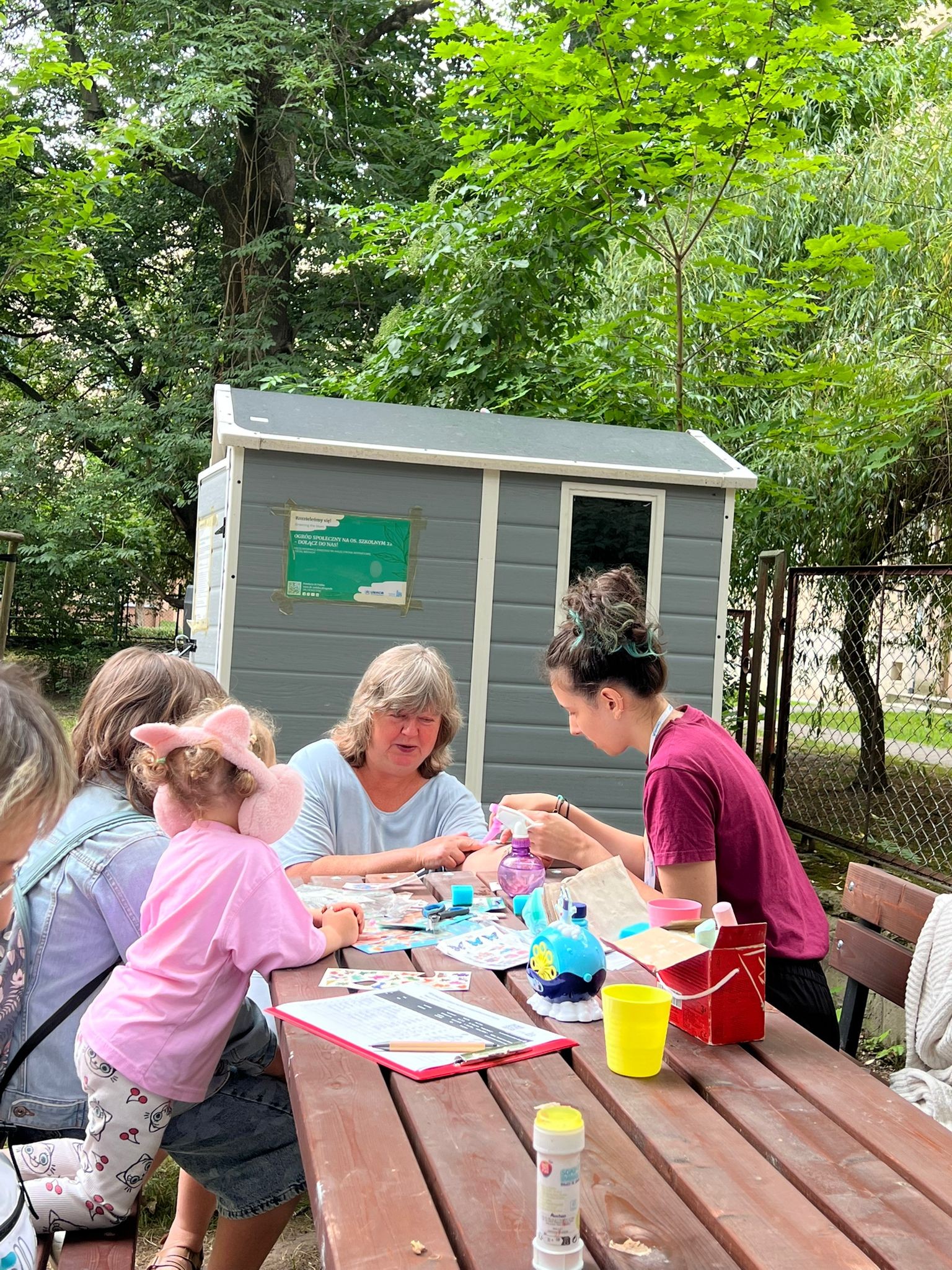 I na koniec — wisienka na torcie! Aktywności w ogrodzie społecznym przy Osiedlu Szkolnym 22. W każdą wakacyjną sobotę zapraszamy Was do tego wyjątkowego miejsca, gdzie Klaudyna wraz z wolontariuszami angażuje uczestników do wspólnej zabawy, gier i dbania o nasz ogród.