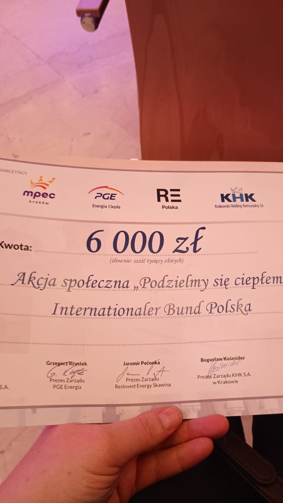 Nasza Fundacja IB Polska otrzymała dofinansowanie w wysokości 6000 zł w ramach akcji „Podzielmy się ciepłem”! Symboliczny bon nasza przedstawicielka Aneta Kurek odebrała z rąk Marii Klaman zastępczyni prezydenta Miasta Krakowa podczas uroczystej gali programu. Środki te przeznaczone są na dopłaty do zakupu ciepła sieciowego oraz ciepłej wody dostarczanej przez MPEC.