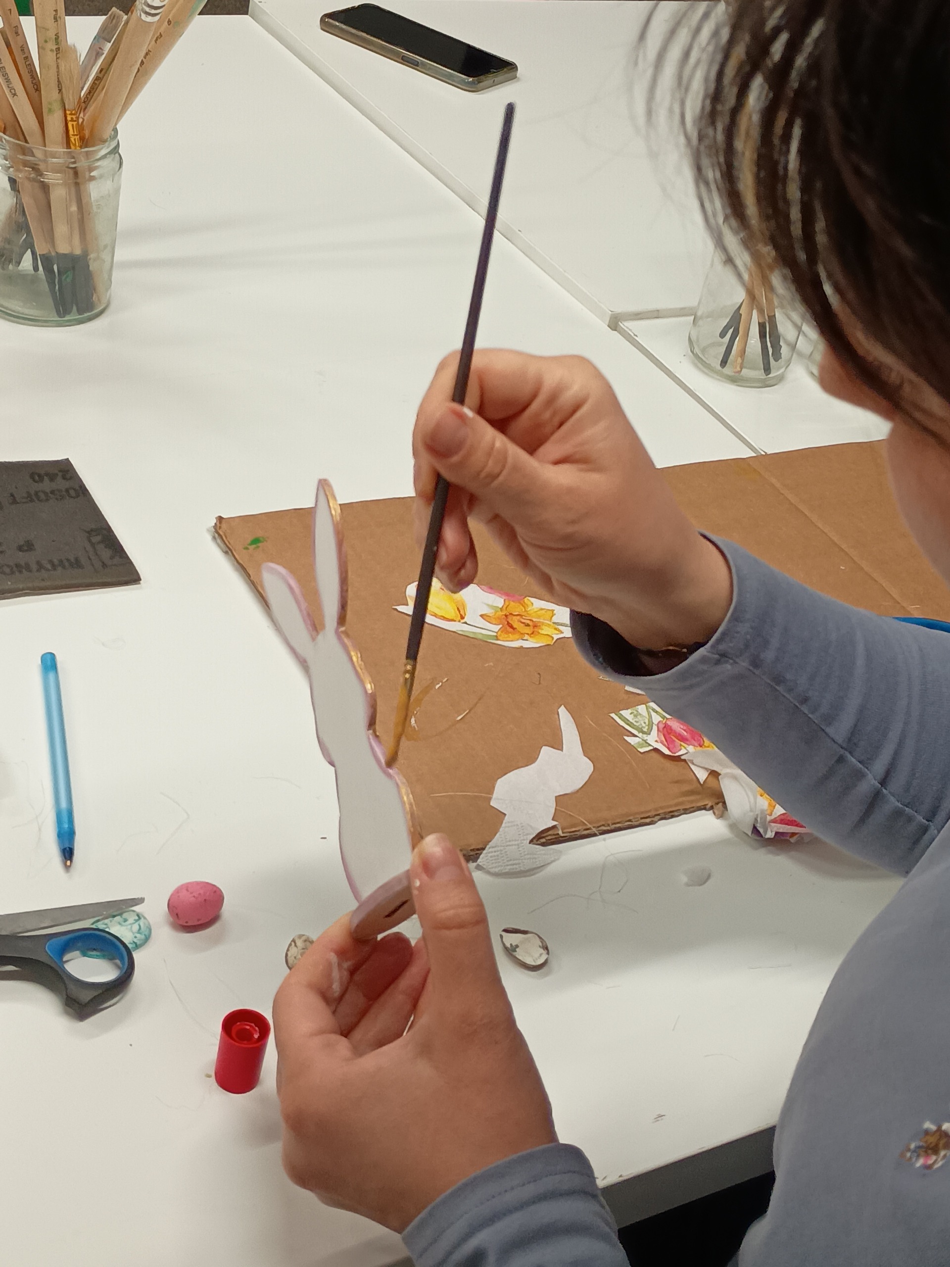 Pierwsze marcowe spotkanie wokół Recyklingowego rękodzieła poświęciłyśmy na przygotowanie pierwszej wielkanocnej ozdoby – na prośbę uczestników. Powstały wiosenne króliki, do których wykorzystaliśmy chusteczki oraz resztki różnych farb.
