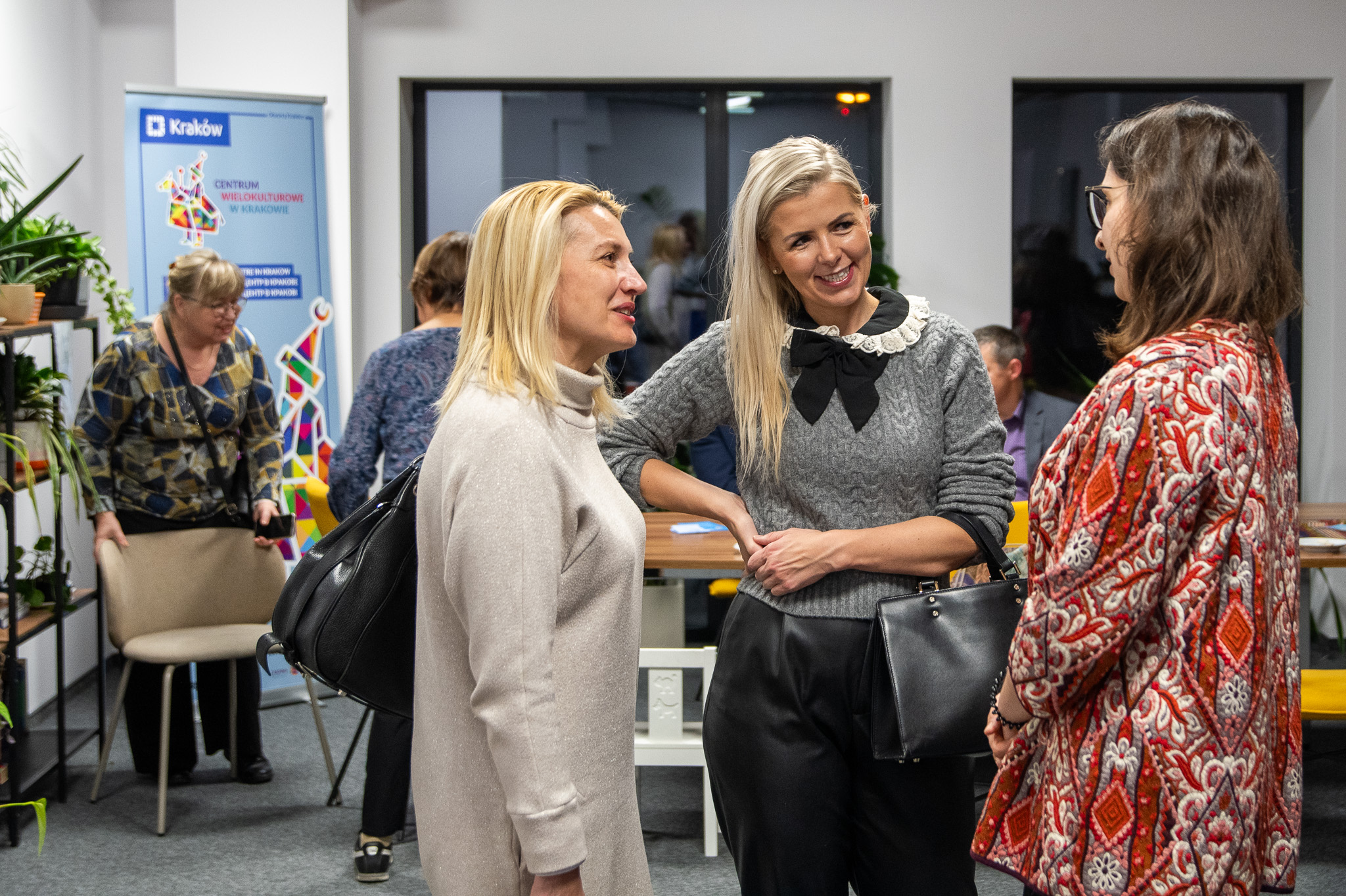 Podczas wydarzenia w Centrum Wielokulturowym, dr Maria Wojtacha, Dyrektorka Fundacji IB Polska (głównego operatora Centrum), zaprezentowała roczny raport działań. Z jego treści wynika, że Fundacja w 2024 roku pomogła aż 37 000 osobom (link do raportu: Raport), realizując szeroką gamę projektów wspierających edukację, rozwój zawodowy i integrację międzykulturową. Wystąpienie zostało przetłumaczone na język angielski przez Aleksandrę Chabior, Zastępczynię Koordynatorki Centrum Wielokulturowego, co umożliwiło zrozumienie przekazu przez wszystkich gości.