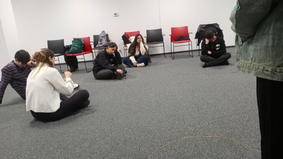 First, each one of us created our own border with different shapes and ropes. As a result, everyone had a different size and form that represented our own personality and boundaries. After that, we split into two groups (the oceans and the islands) and we did two different activities. The first one was a nice approach from a participant from the ocean to an island person. We had to interact with each other while respecting the borders. On the other hand, the second activity was the complete opposite. The island person had to attack and disrespect their partner and their borders.