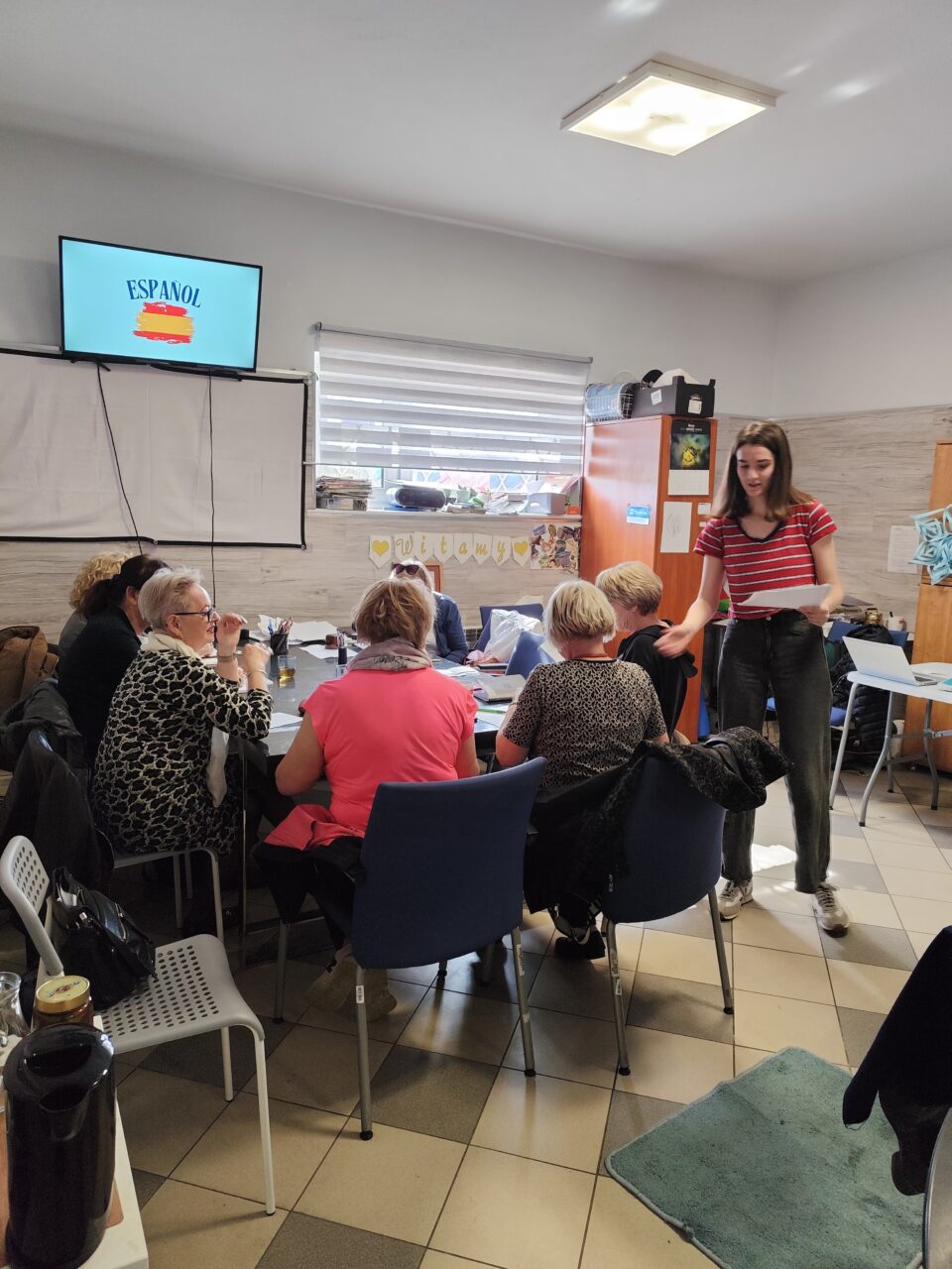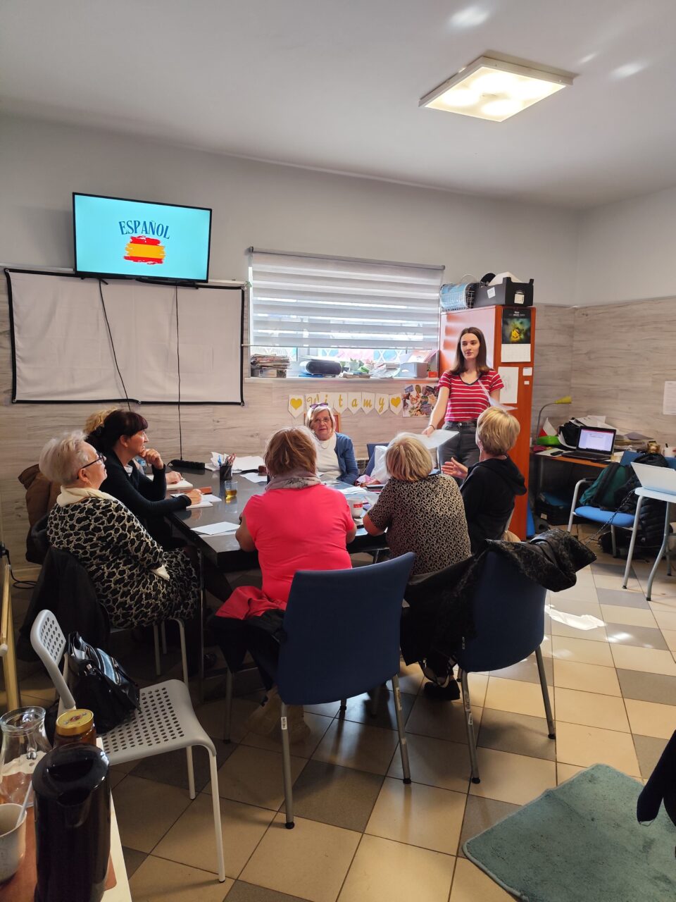 Once every two months, I visit another Senior Centre where they already have Spanish lessons, and I assist the coordinator with grammar explanations and exercises. I also gave a presentation about Spain, where I talked about the culture, traditions, and daily life. It was a great experience to share a bit of my country with them.