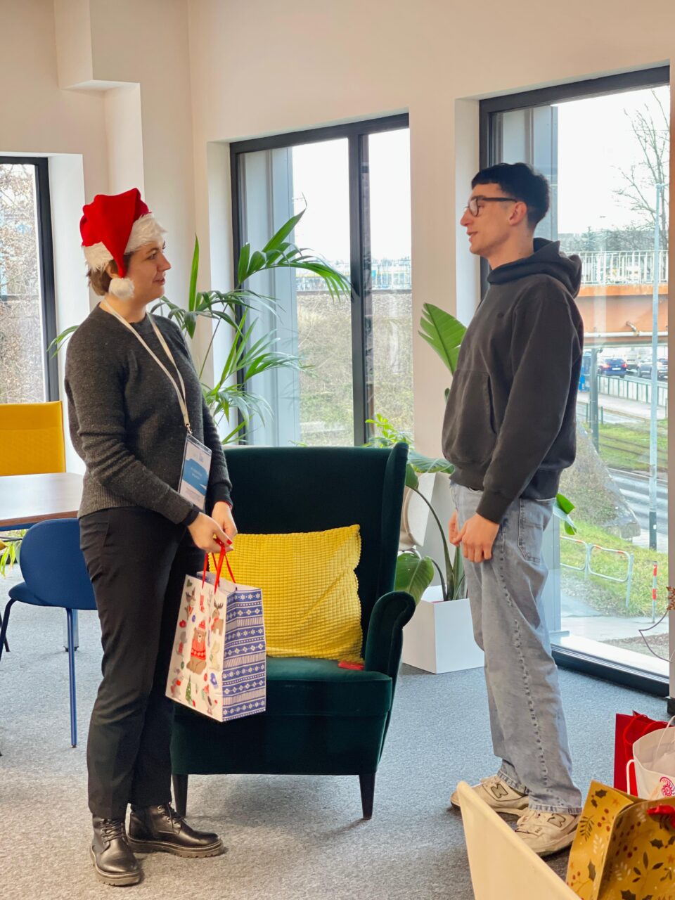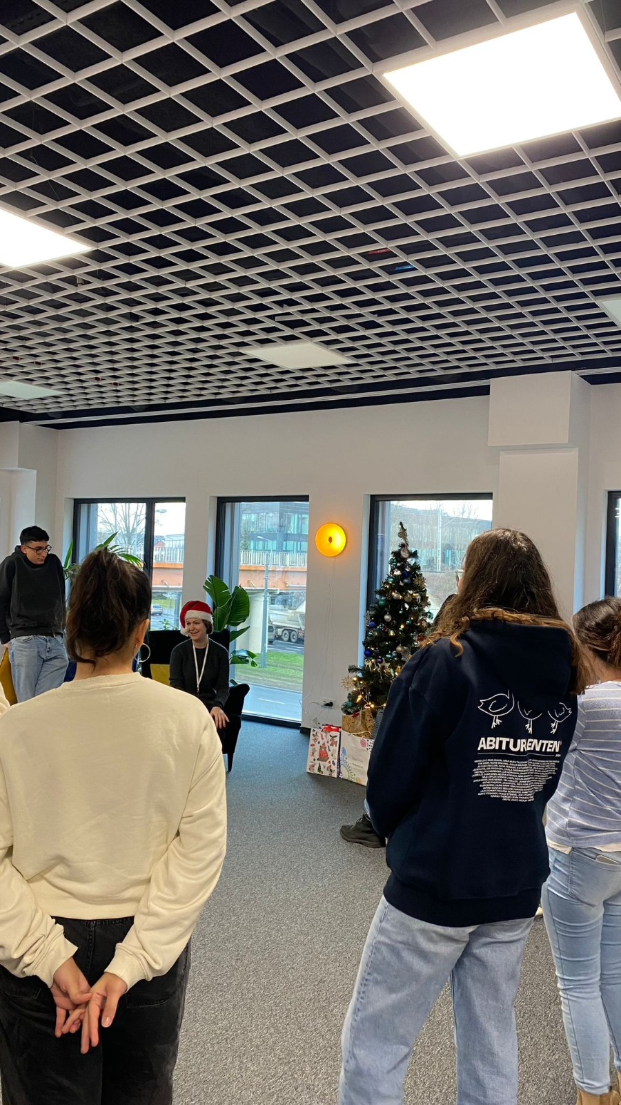 After a lunch break with lively conversations, the fun and christmassy part started. At our previous Thursday meeting, we had decided to play Secret Santa, and now it was time to exchange gifts. Our coordinator Kristina was our Santa Claus and together with two elves the presents were handed out. Everyone had been creative with the presents and so there was lots of laughter and beaming faces as we unwrapped them.