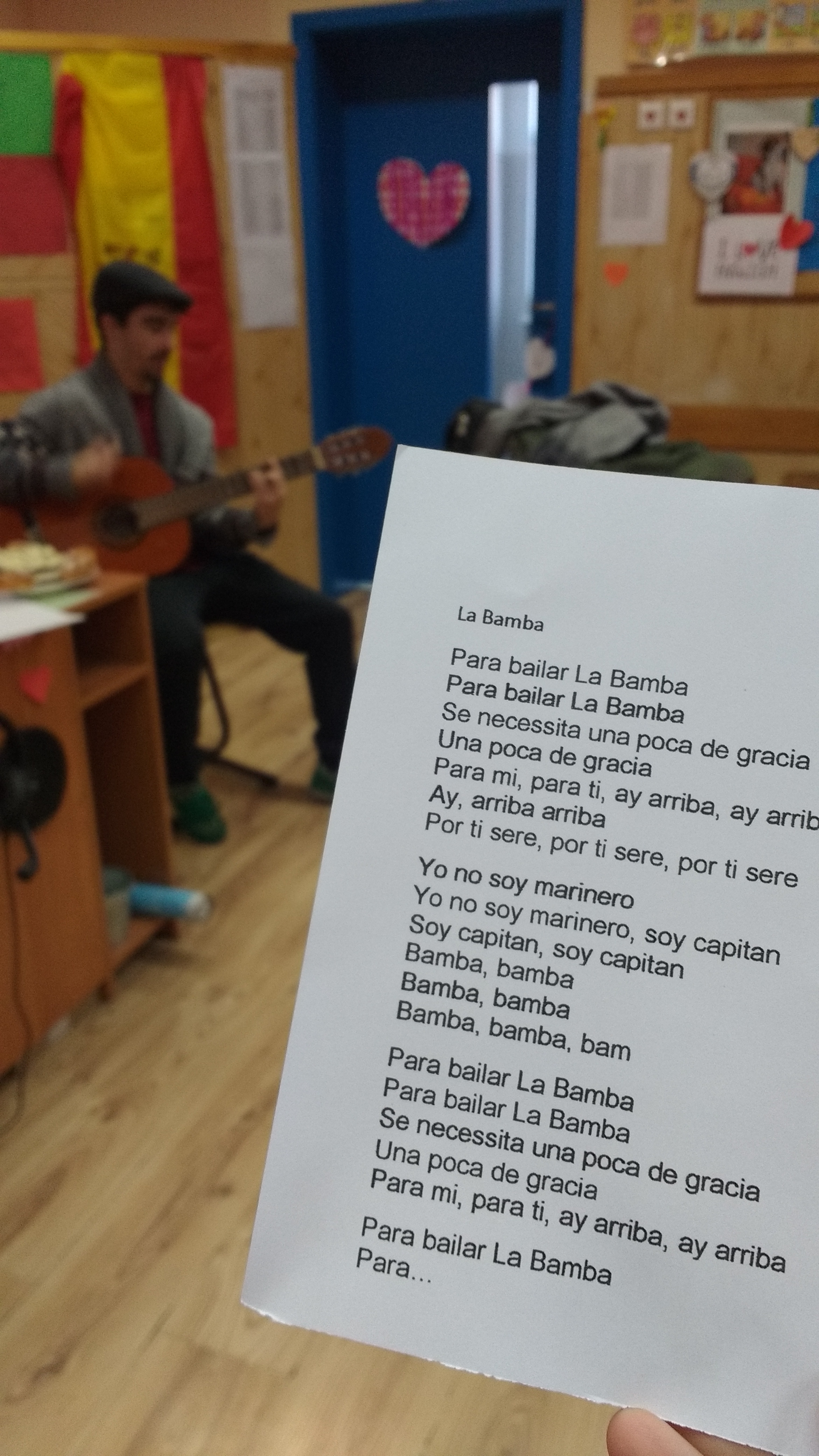 After eating the tortilla’s, it was time for some musical break. Joao took out his guitar and started playing and singing La Bamba, twice. The first time, only Joao and a few volunteers sang, but the second time all volunteers, students and teachers sang loudly. It’s a fun song to sing and I’m sure some people were singing it all day long as it’s a real earworm!