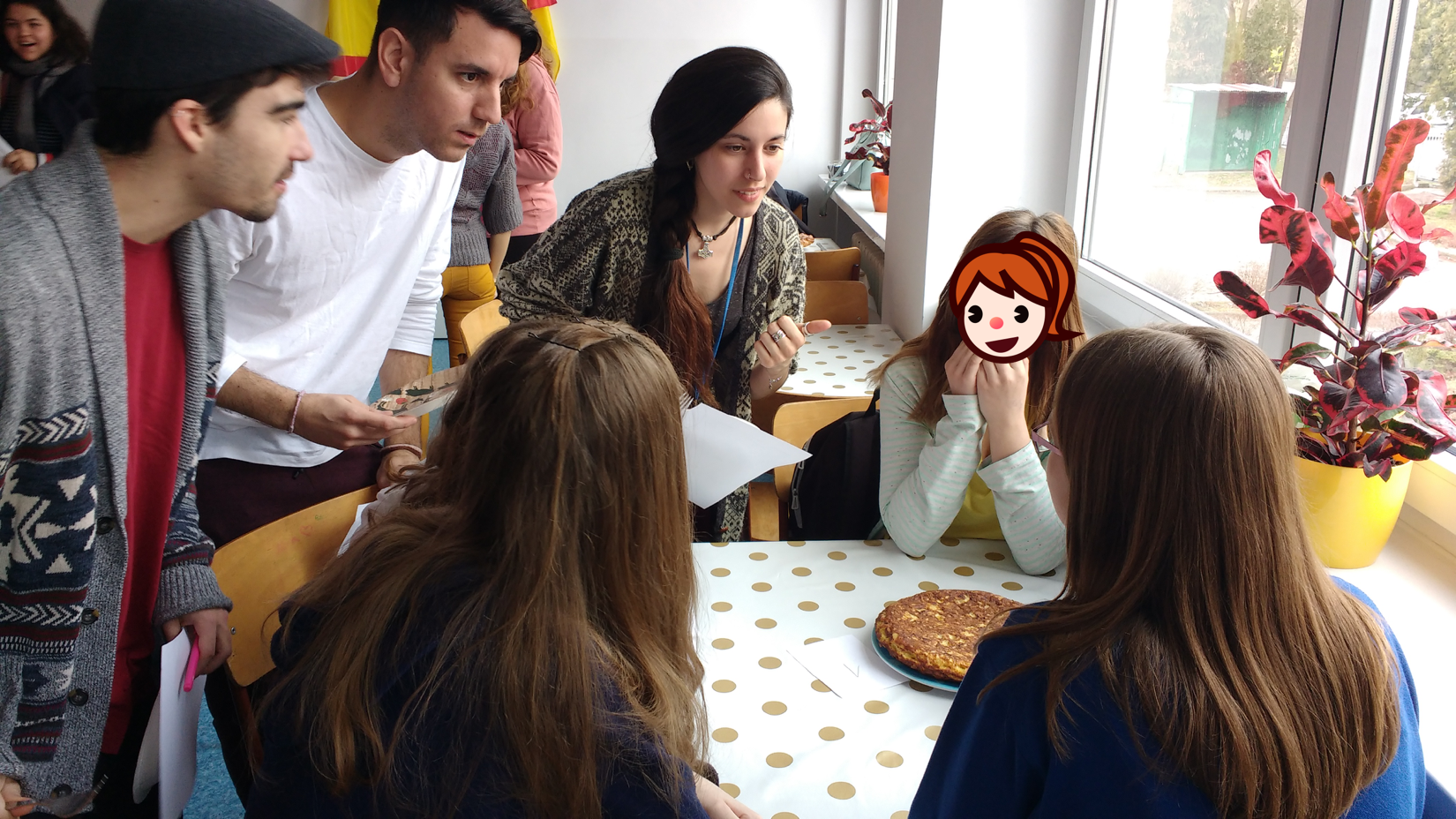 In total, three classes participated in the Tortilla festival. The ultimate goal was to make the tastiest tortilla. In order to do so, the class was divided in small groups of two to four people who then prepared a tortilla at home and presented it at the festival. The jury, consisting of volunteers, then tasted all tortillas and graded them. We must admit that we were surprised by the creativity of the participants! While some tried to respect the traditional recipe, others added some surprising elements like vegetables, meat or even decoration. They were all really delicious and ranking them was quite hard! In the end, we were able to decide on a top three, but not after some debating and discussion between the volunteers.